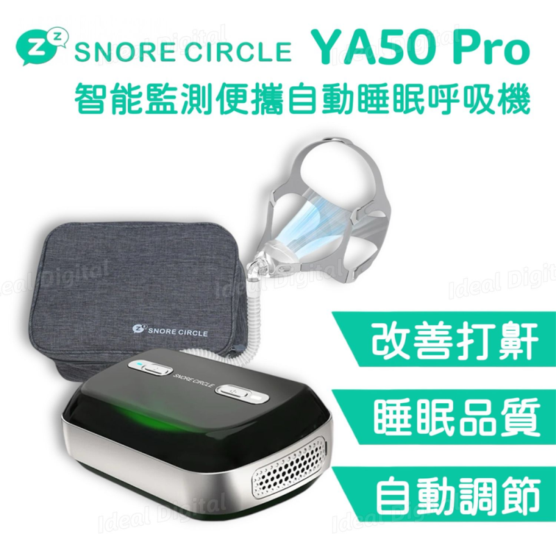 SNORE CIRCLE YA50 PRO 智能監察便攜自動睡眠呼吸機專為改善睡眠品質設計,運用正壓氣流技術有效減少打鼾、低通氣及睡眠呼吸中止等問題。2025升級版進一步提升用戶體驗,結合輕巧便攜設計、無水加濕技術及低噪音運行,讓您無論在家或旅途中,都能享受安穩舒適的睡眠。搭配專屬 App,能即時監測睡眠數據,提供科學化的分析與建議,幫助您從根本改善睡眠問題,提升生活質素。