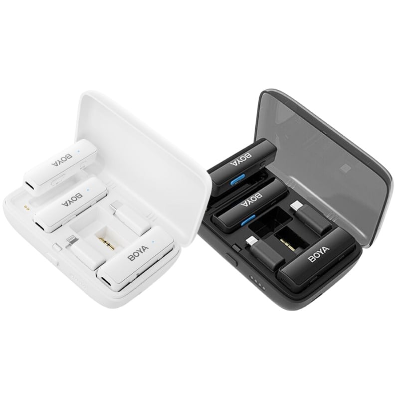 BOYALINK是一款迷你便攜的2.4GHz無線麥克風系統,兼容相機、智能手機、平板、電腦等設備。產品具有自動配對和可設置的降噪功能,可提供出色的廣播級音質,易於使用,適用於內容創作、直播、Vlog拍攝、移動新聞等應用場景。本系列有3.5mm TRS、USB-C、iOS Lightning三種轉接頭可供選擇。接收器具有Type-C充電孔,在與ioS Lightning/ USB-C轉接頭一起使用時,支持―邊錄製一邊給設備充電。充電盒可為發射器和接收器提供移動電源,便於出行攜帶。