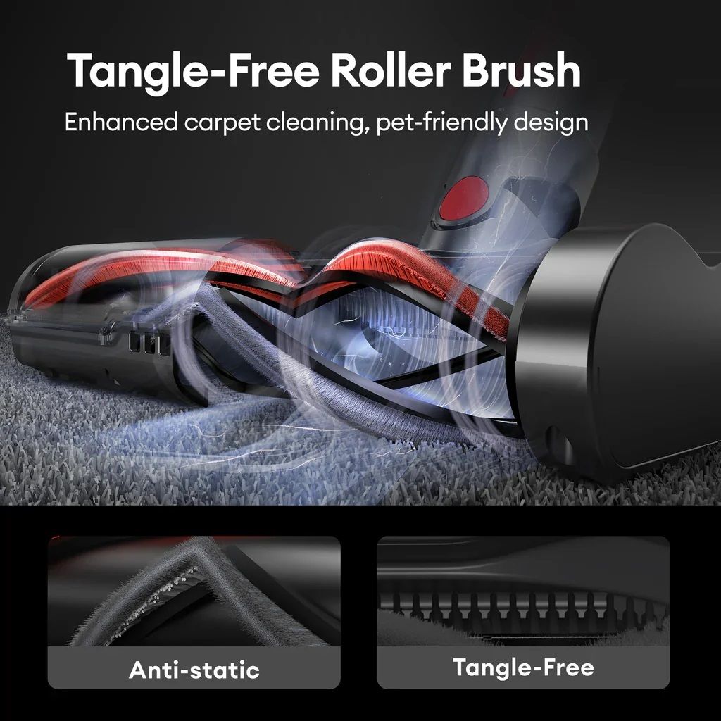 - 刷頭設計: 防纏繞滾刷
